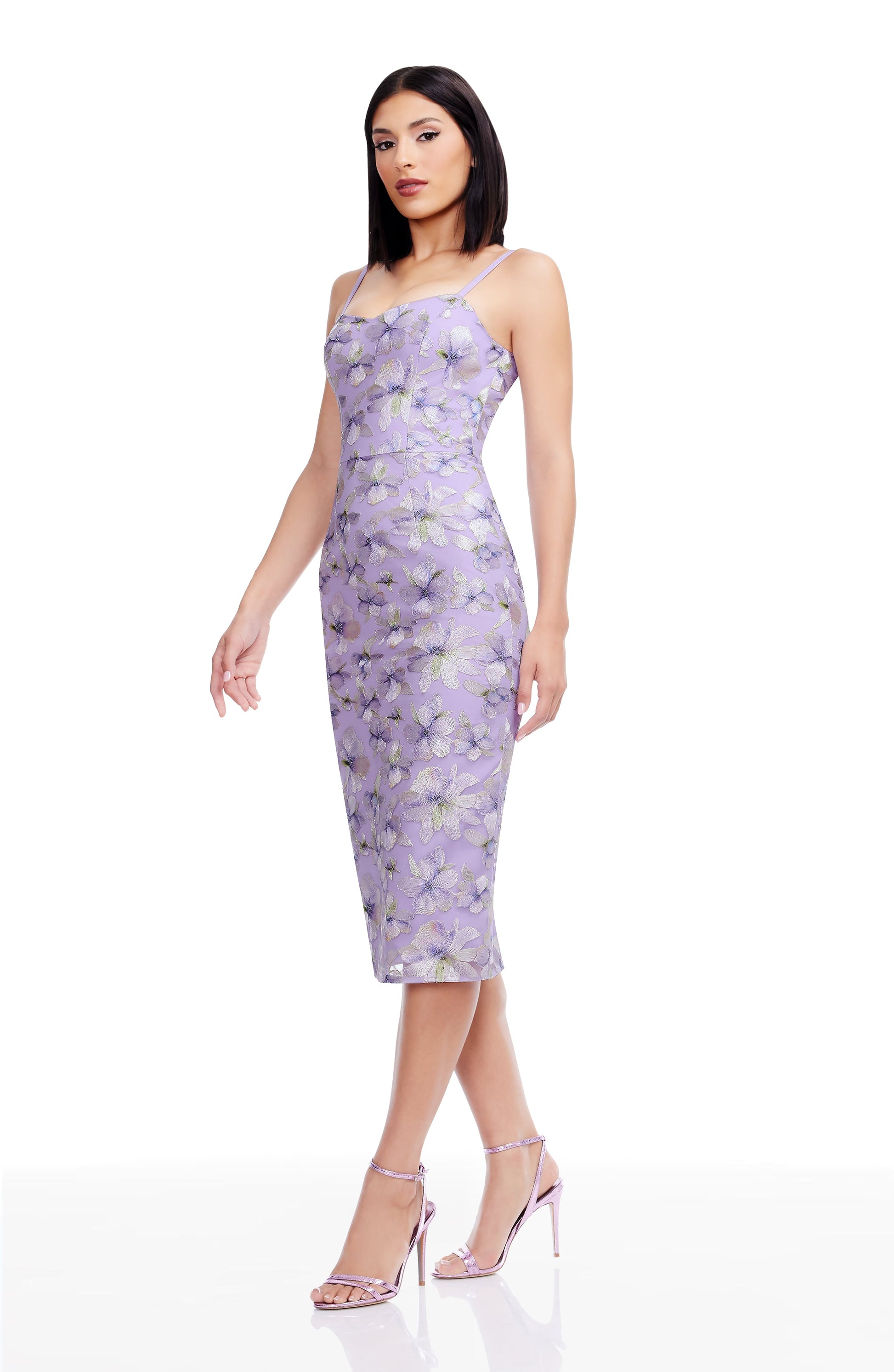 The Blakely Dress boasts a sleeveless, sweetheart design that showcases a bodycon silhouette in a chic midi length.