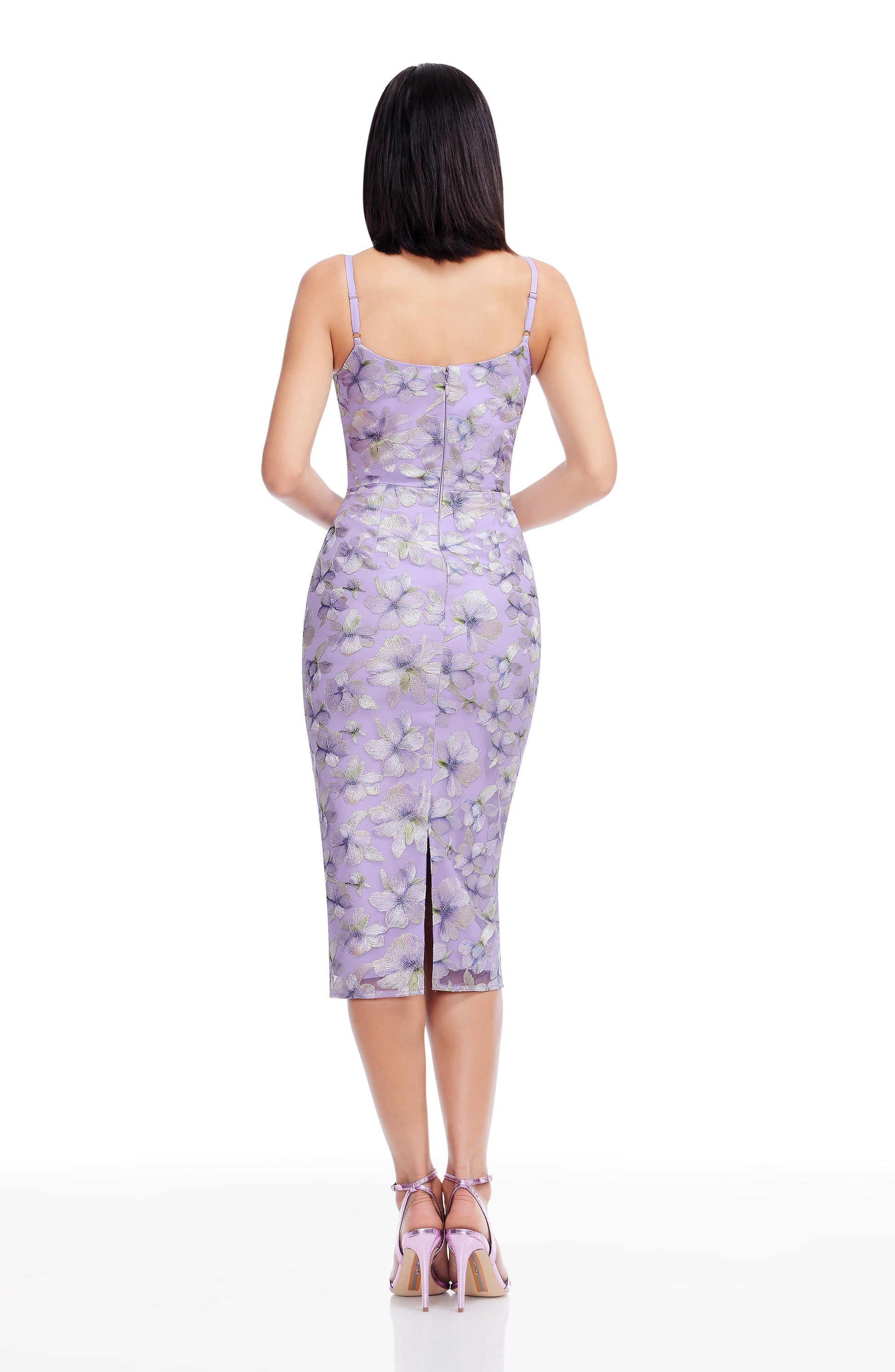- Center back skirt slit, adjustable straps