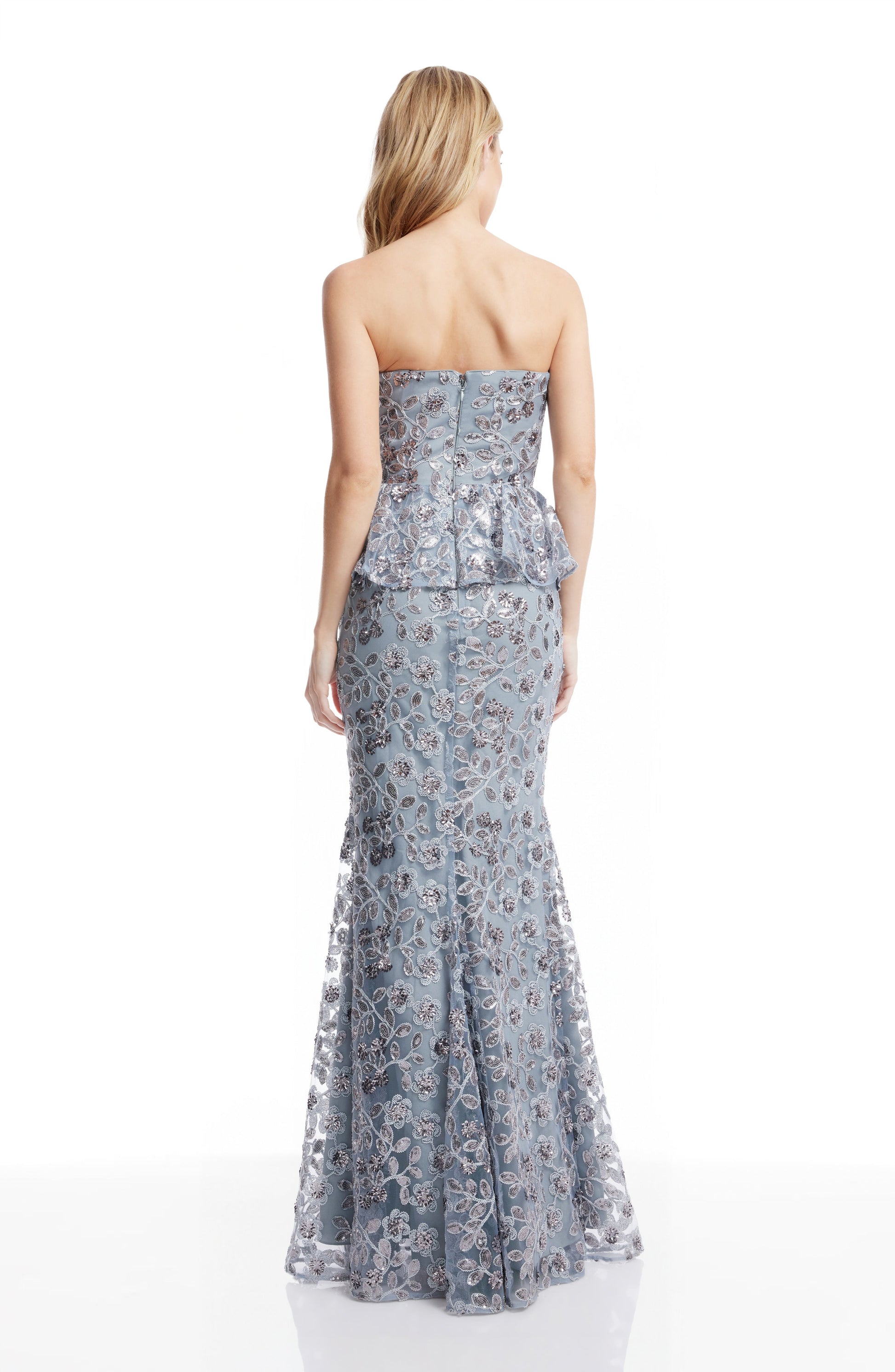 Expertly designed for a sleek and sophisticated look, the Scarlett Dress features a strapless bustier and elegant peplum mermaid silhouette. The addition of godet detailing adds a touch of uniqueness while enhancing the gown's graceful flow. Perfect for any special occasion, this dress is sure to make a statement.