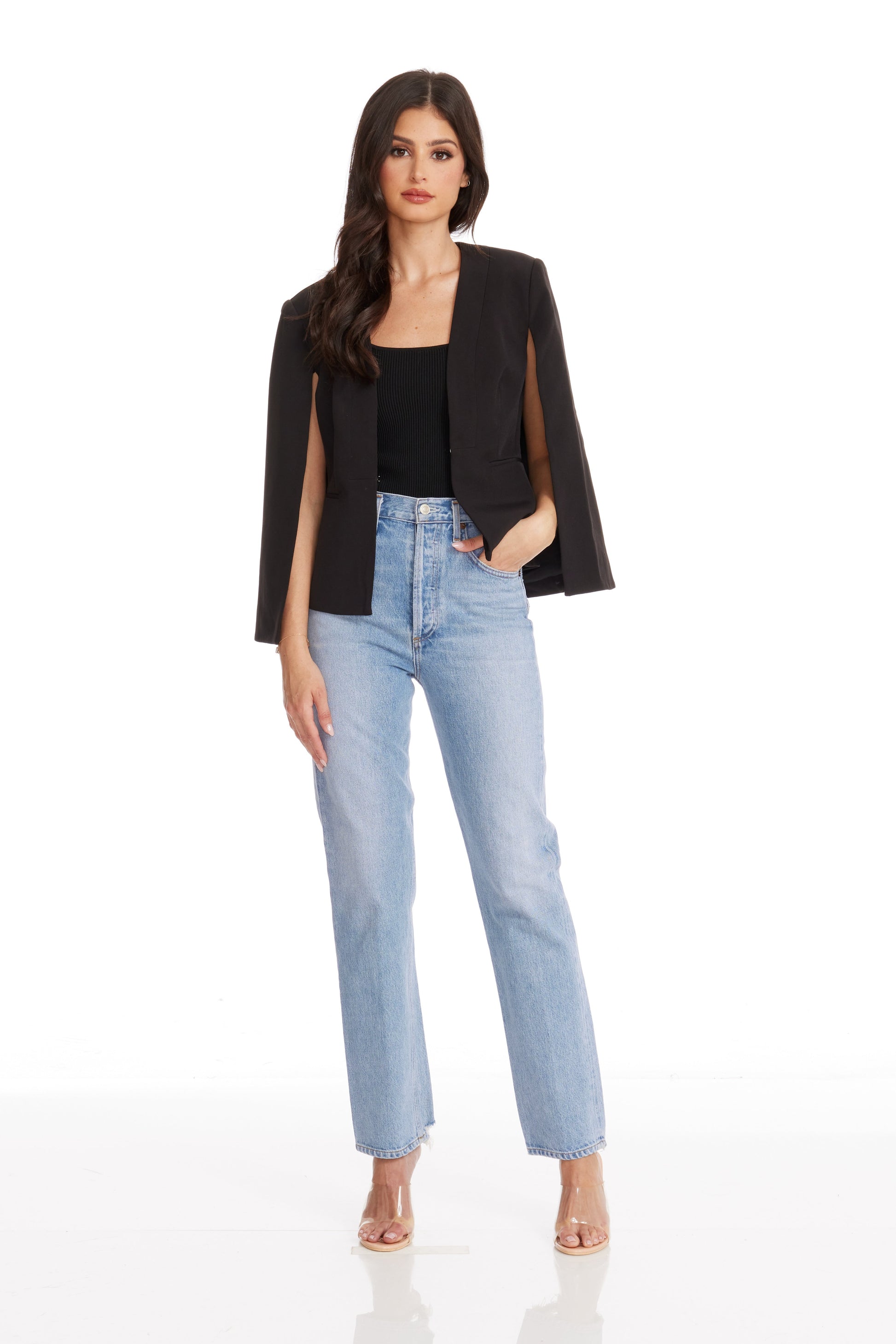 Introducing the Baron Jacket - a sleek and stylish cape-like jacket designed for a polished and sophisticated appearance.