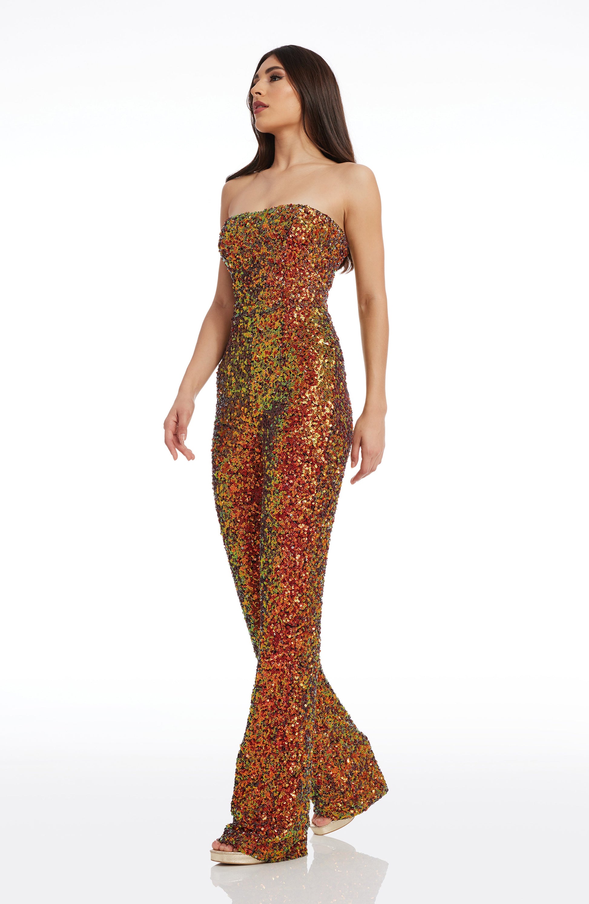 The Andy Jumpsuit is set to make a statement. This ensemble features removable straps for an alternate look on this fully interlocking yarn-lined Jumpsuit. The jumpsuit has minimal stretch, wide legs, and a center-back zipper.
